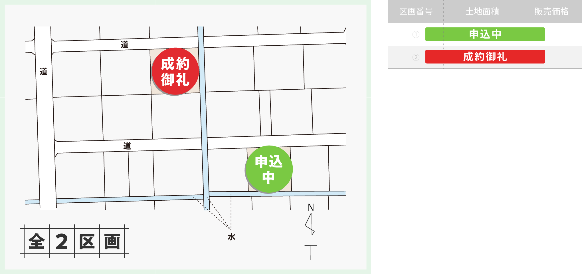 | 土地面積 | ①申込中 ②成約済 |